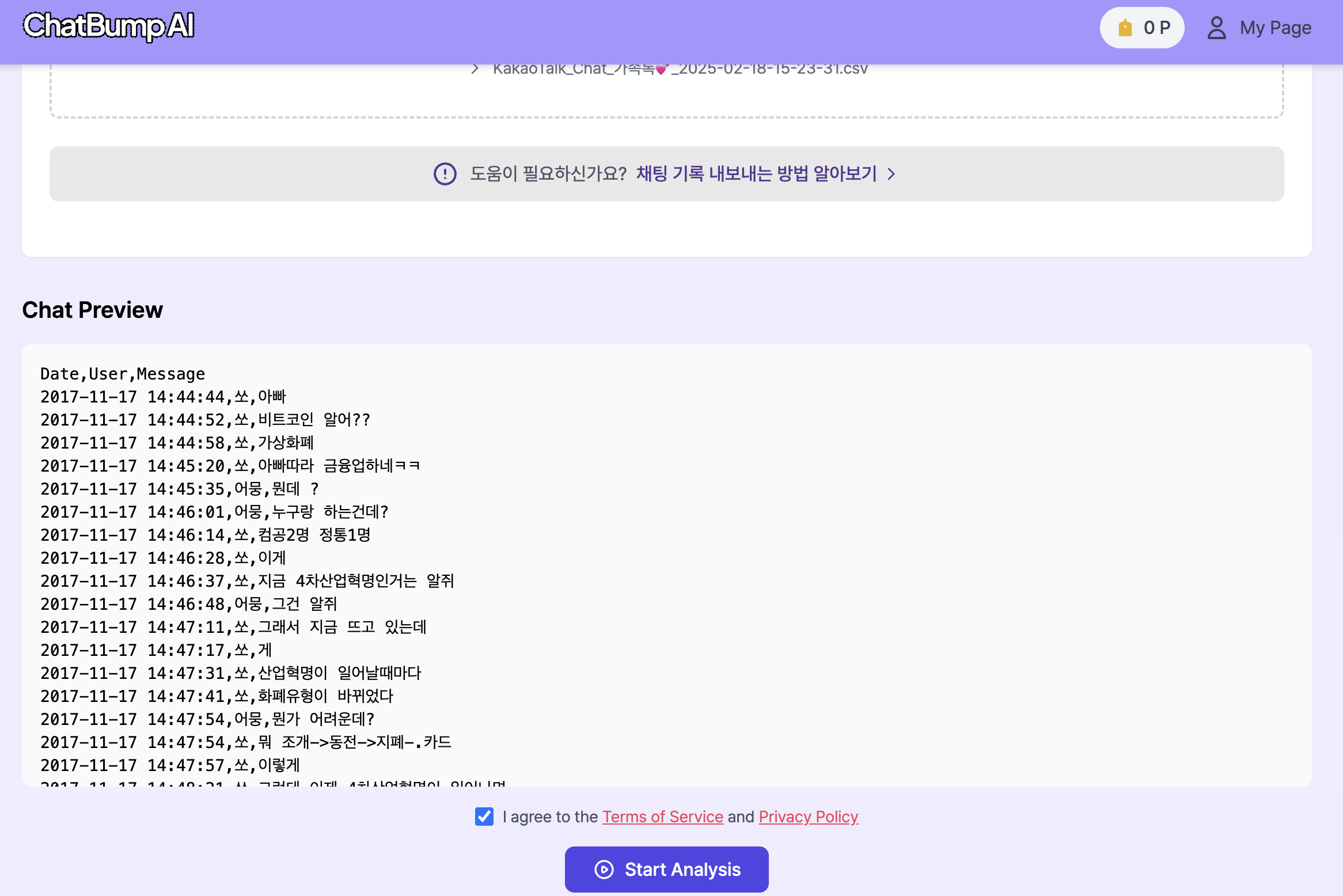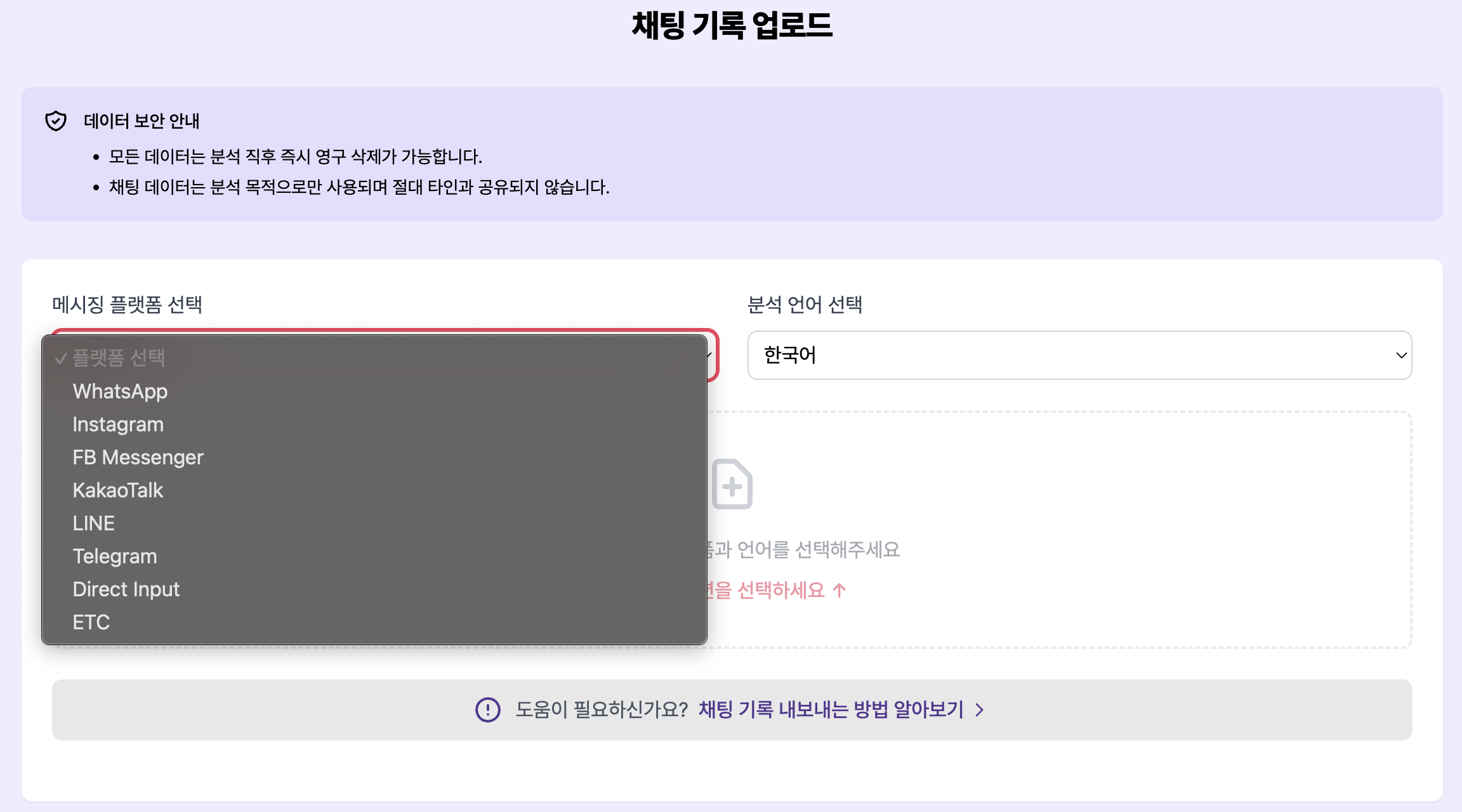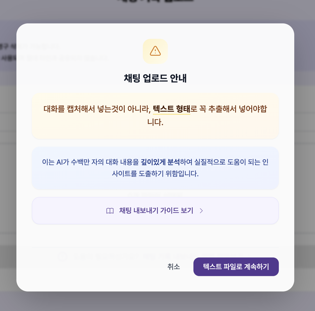 아무래도 전체 대화를 넣어야 깊은 분석이 되기 때문에 직접 추출해서 넣으라고 하는데요.