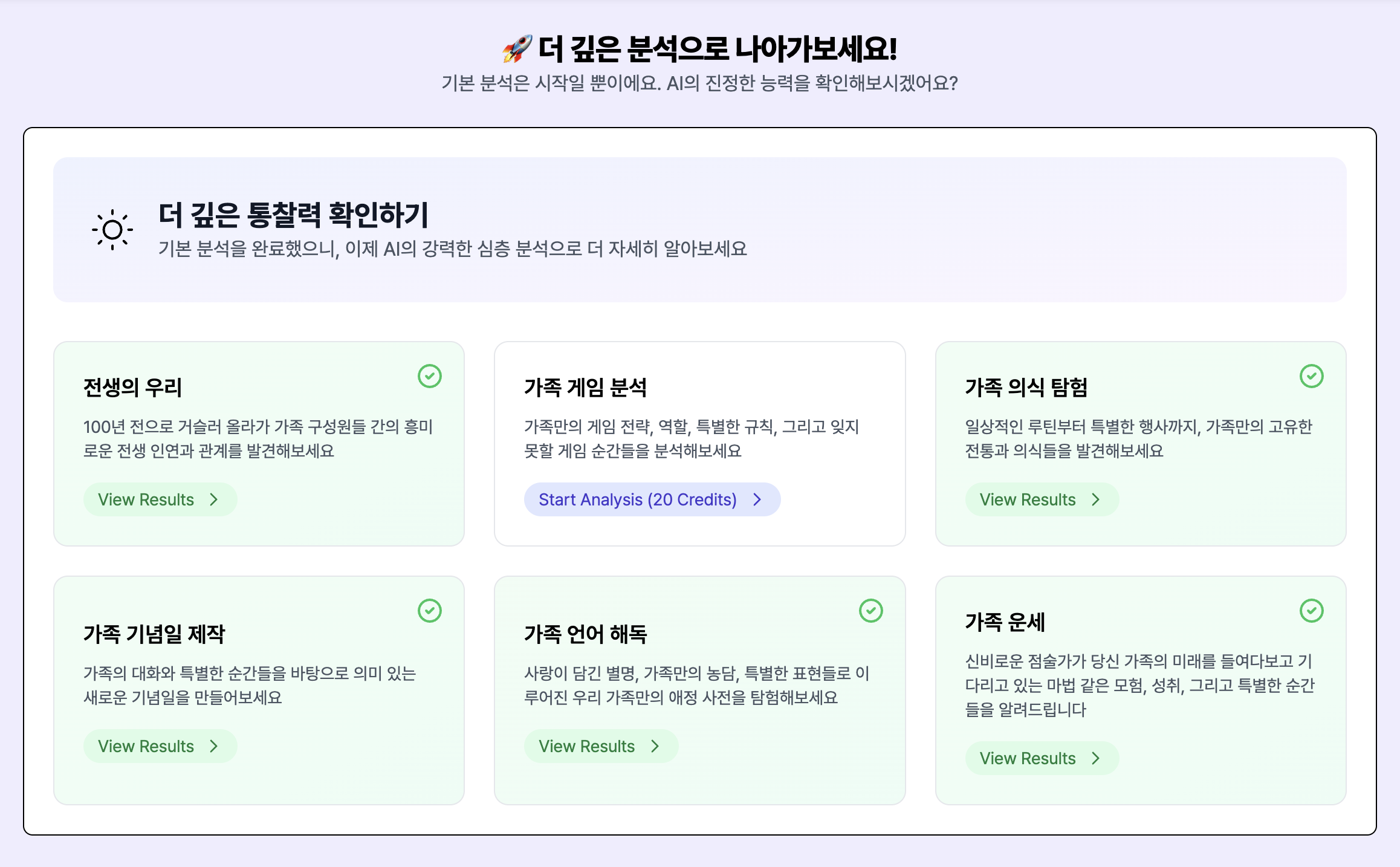 가족 행복 지수, 소중한 가족 순간들, 소통 스타일 등을 찾아준다고 합니다.