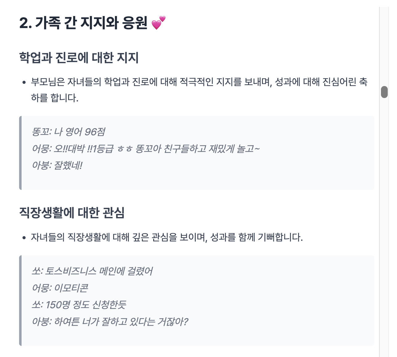 제가 쏘인데, 가족에 대해서 갑자기 감사함을 표했던게 나왔네요ㅋㅋ