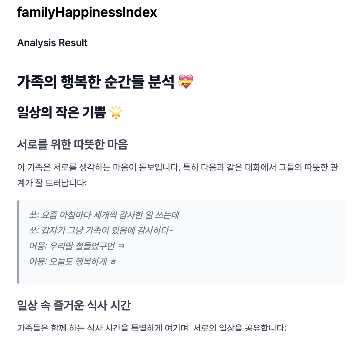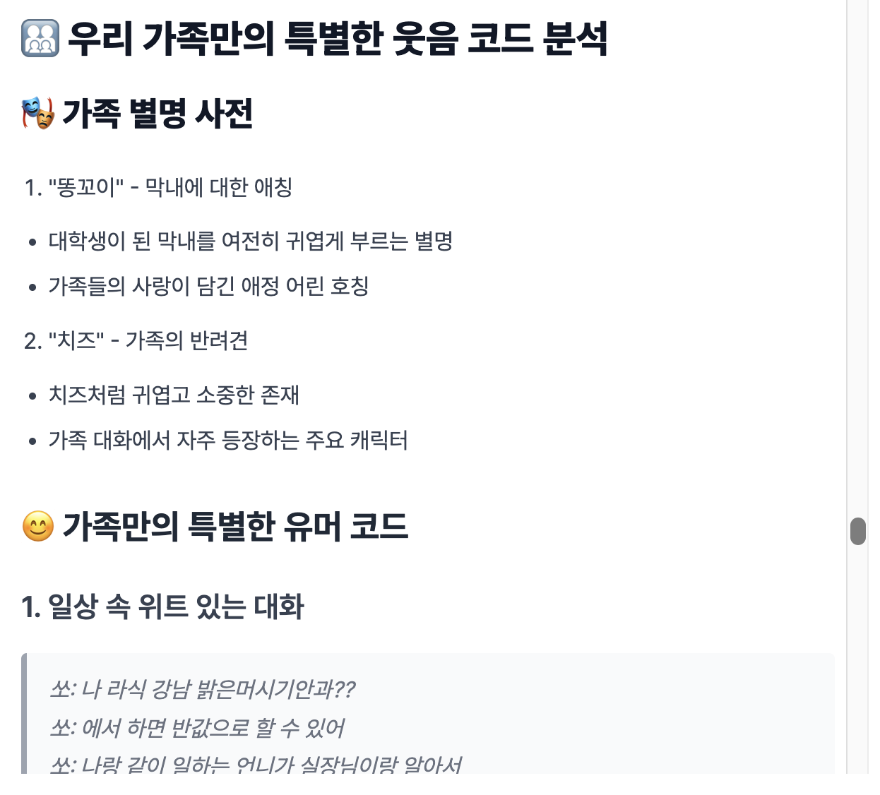 분석한 내용들은 모두 가족톡에 또 공유했는데, 다들 한참동안 웃고 떠들며 재밌게 놀 수 있었습니다.