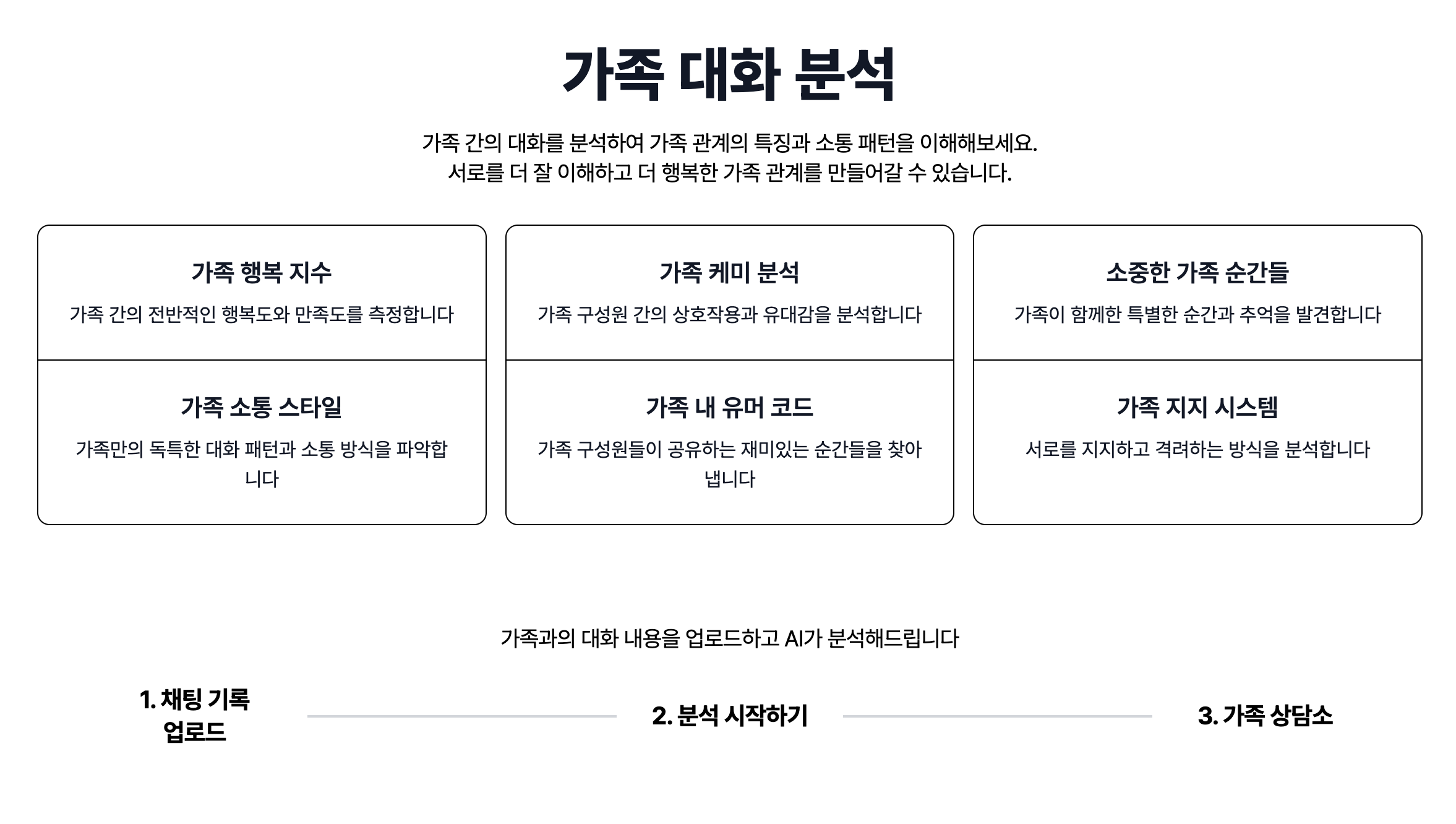 '채팅 기록을 업로드 하면, AI가 숨겨진 통찰력, 감정 패턴, 관계 역학을 분석해드립니다' 라는 문구가 메인화면에 있습니다.